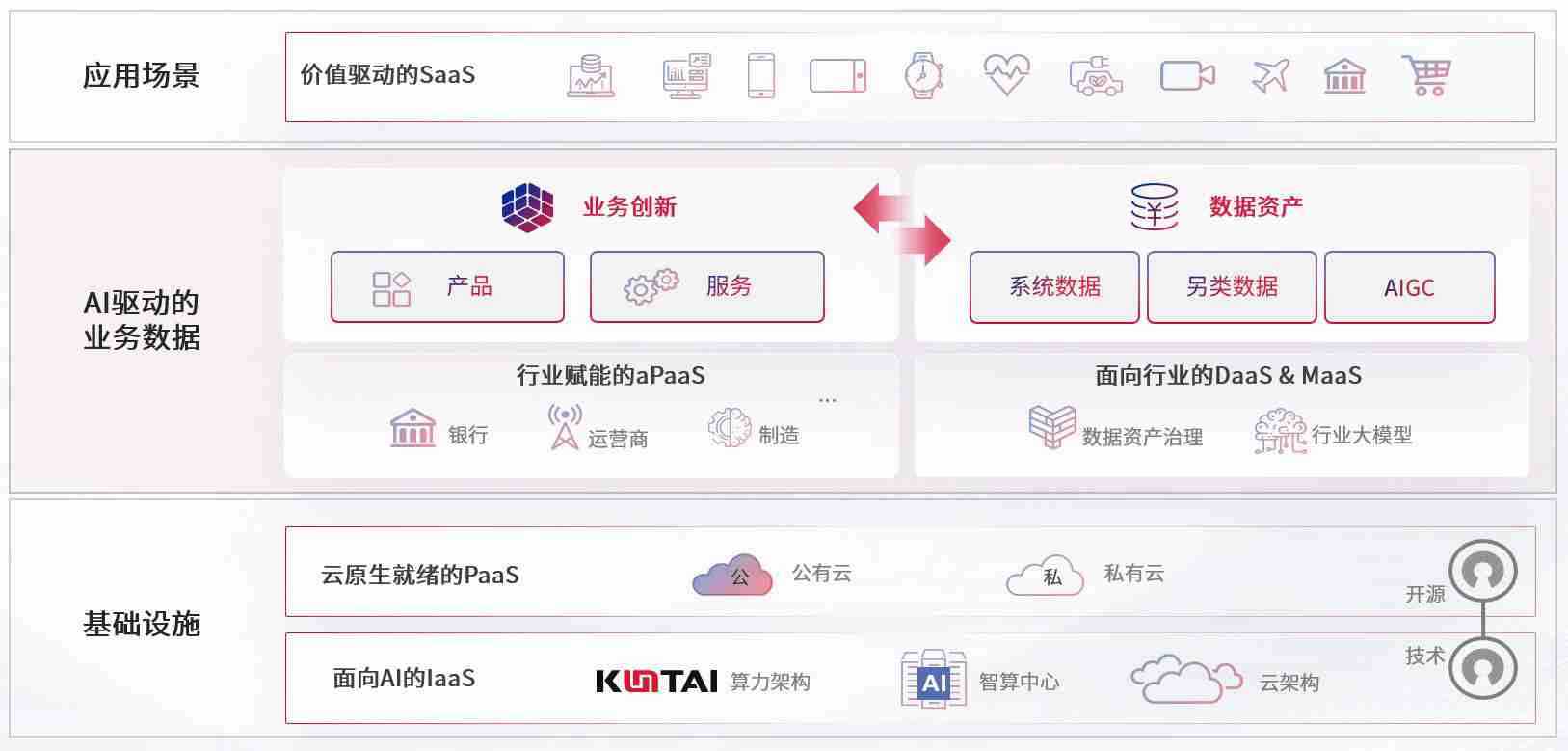 数字时代,,围绕企业数字化转型的关键要素,,,天辰娱乐数码开创性的提出数云融合战略和技术体系框架,,,着力在云原生、、数字原生、、AI原生和信创产业上架构产品和服务能力,,,为处在不同数字化转型阶段的快消零售、、、汽车、、金融、、医疗、、政企、、、教育、、、、运营商等行业客户提供泛在的敏捷IT能力和融合的数据驱动能力,,构建跨界融合创新的数字业务场景和新业务模式,,,助力企业级客户建立面向未来的核心能力和竞争优势,,全面推动社会的数字化、、、智能化转型升级。。。